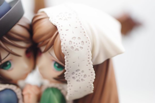 身体を寄せ合う翠星石と蒼星石の表情やコスチューム、十字架がデザインされた台座も相まって、絵画のように繊細かつ重厚感のある仕上がりとなっております。